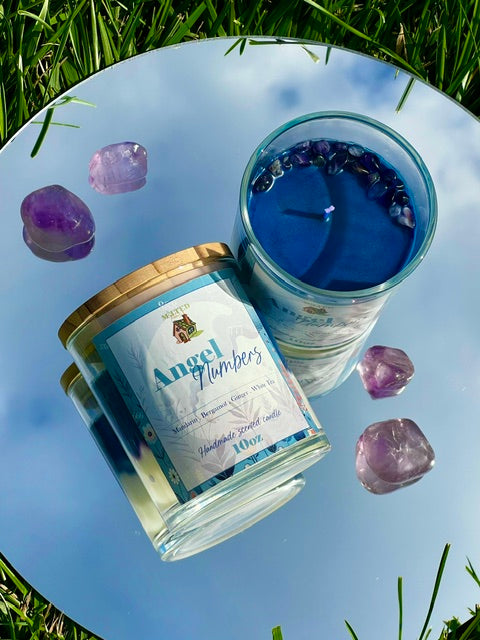 *Please note that these are real crystals. Feel free to keep as many as you would like once your candle has burned down. If you do not wish to keep any of the crystals, please do not throw them in the trash. Instead, give it back to earth by burying them in soil, tossing them in a natural body of water, or leave it at the base of a tree. Crystals are a part of nature and doing this honors the energy they carried.